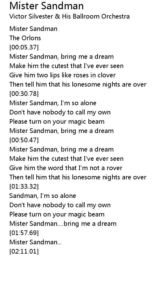 Mister Sandman, bring me a dream |