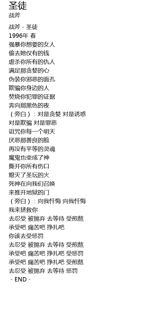 | [00:00.96] | 战斧-圣徒 |