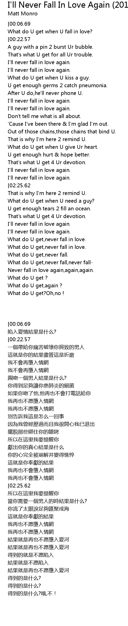 Never fall in love again,again,again. |