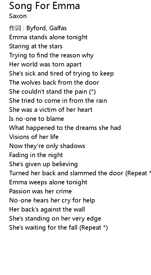 | Emma weeps alone tonight | |