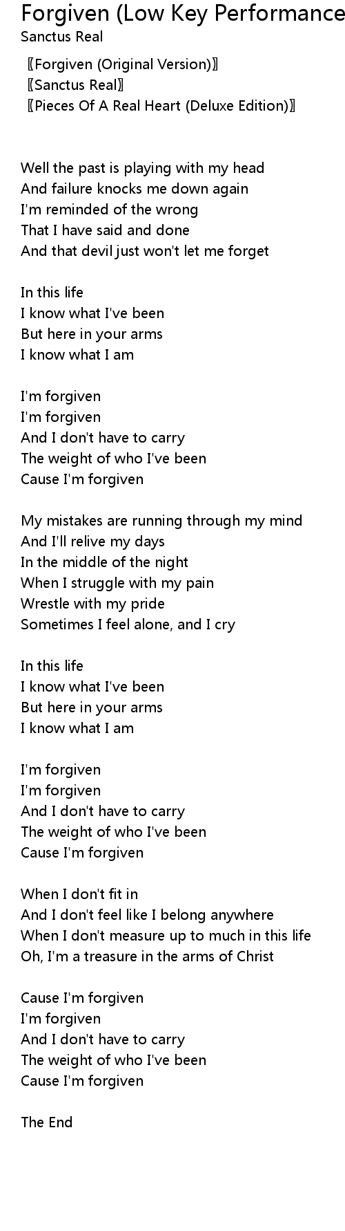 | Song | Forgiven (Low Key Performance Track Without Background Vocals) |