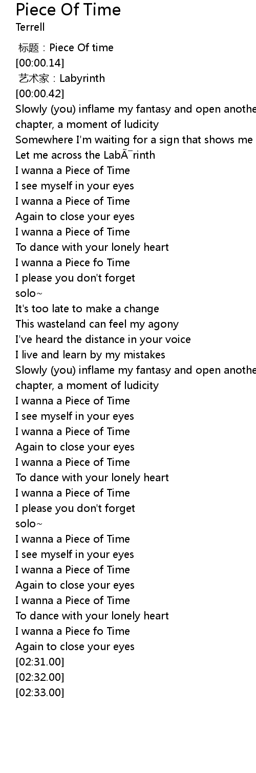 | [00:00.00] | biāo tí: Piece Of time |