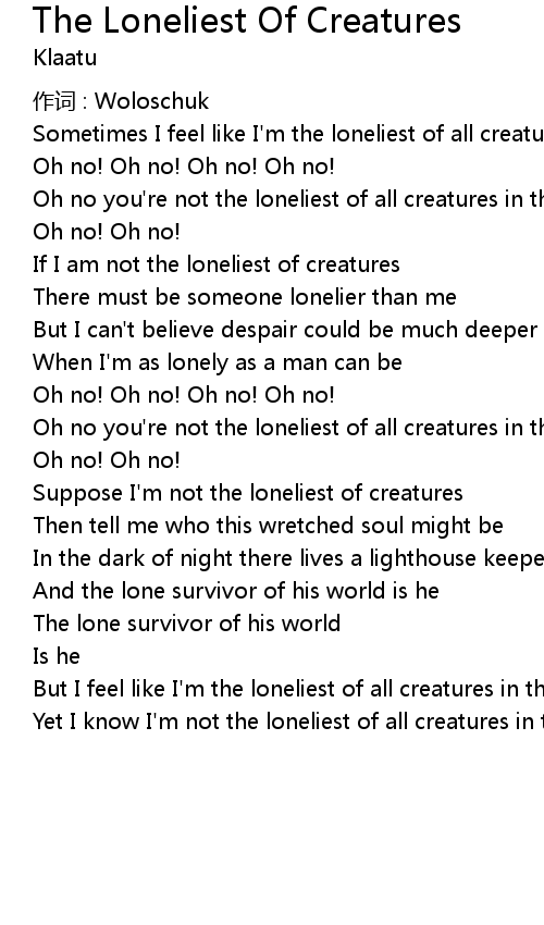 | Yet I know I'm not the loneliest of all creatures in the universe |