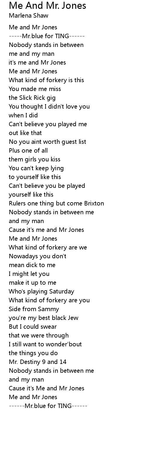 Cause it's me and Mr Jones |