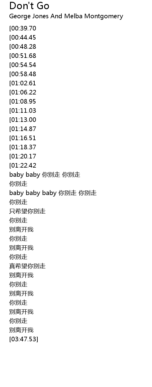 | [02:07.68][01:08.95] | 只希望你别走 |