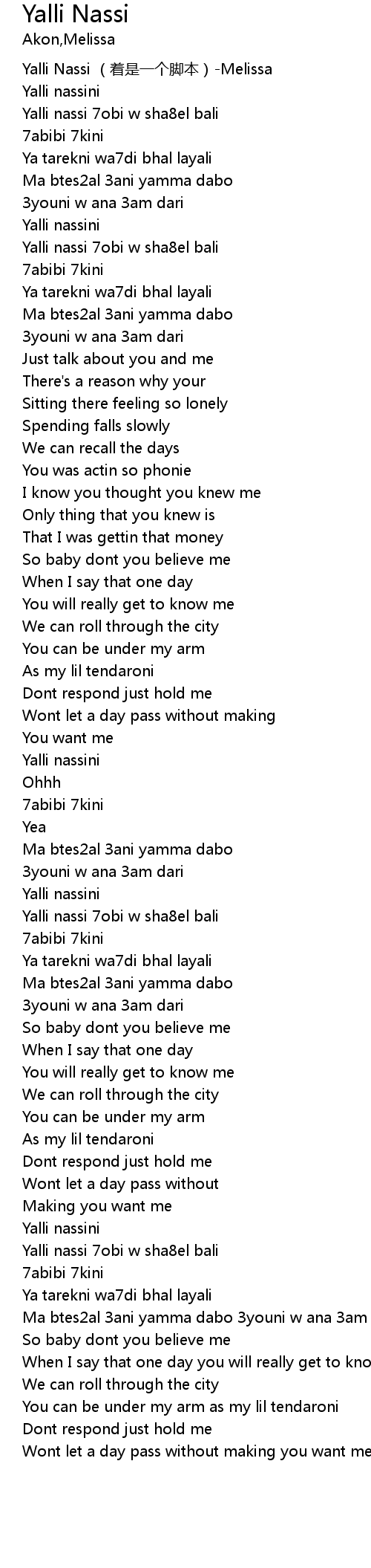 | [00:00.00] | Yalli Nassi zhe shi yi ge jue ben Melissa |