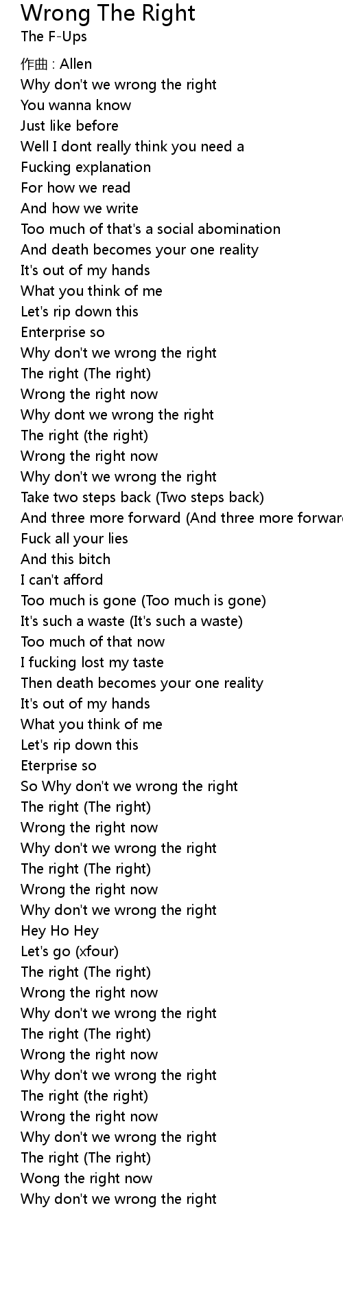 | Why don' t we wrong the right |
