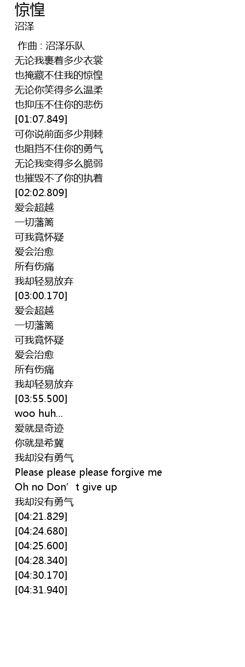 | [00:00.00] | 作曲 : 沼泽乐队 |