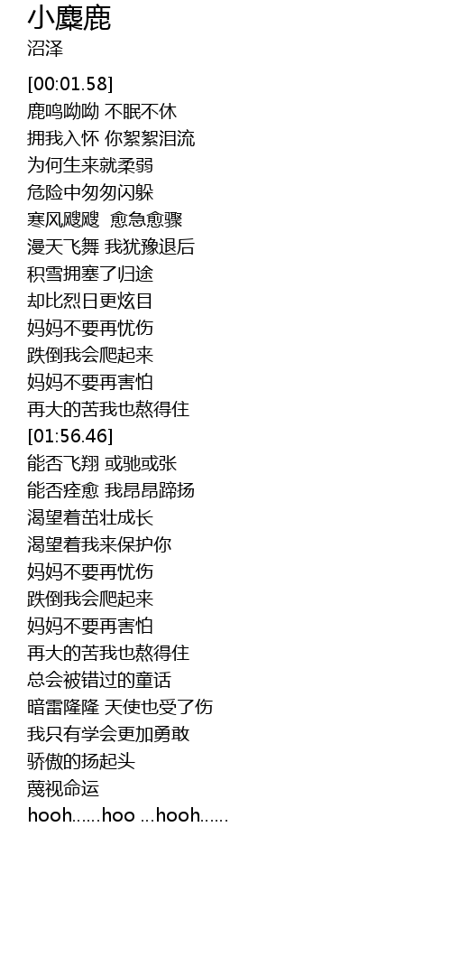 | [01:41.20] | 妈妈不要再害怕 |