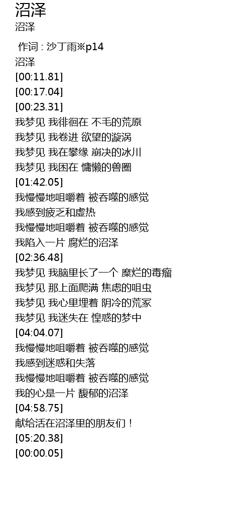 | [05:10.20] | 献给活在沼泽里的朋友们! |