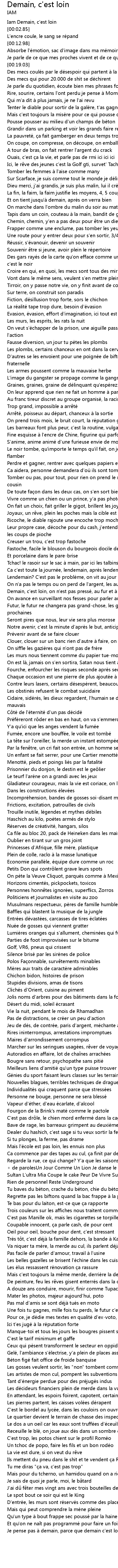 | [03:17.82] | Demain, c'est loin, on n'est pas pressé, au fur et à mesure |