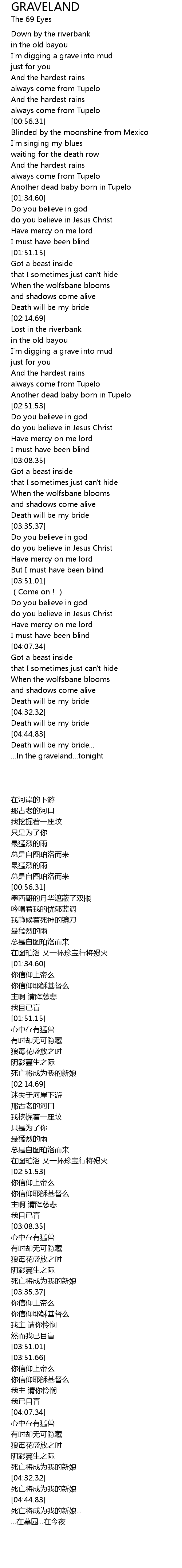 | [00:33.06] | I' m digging a grave into mud |