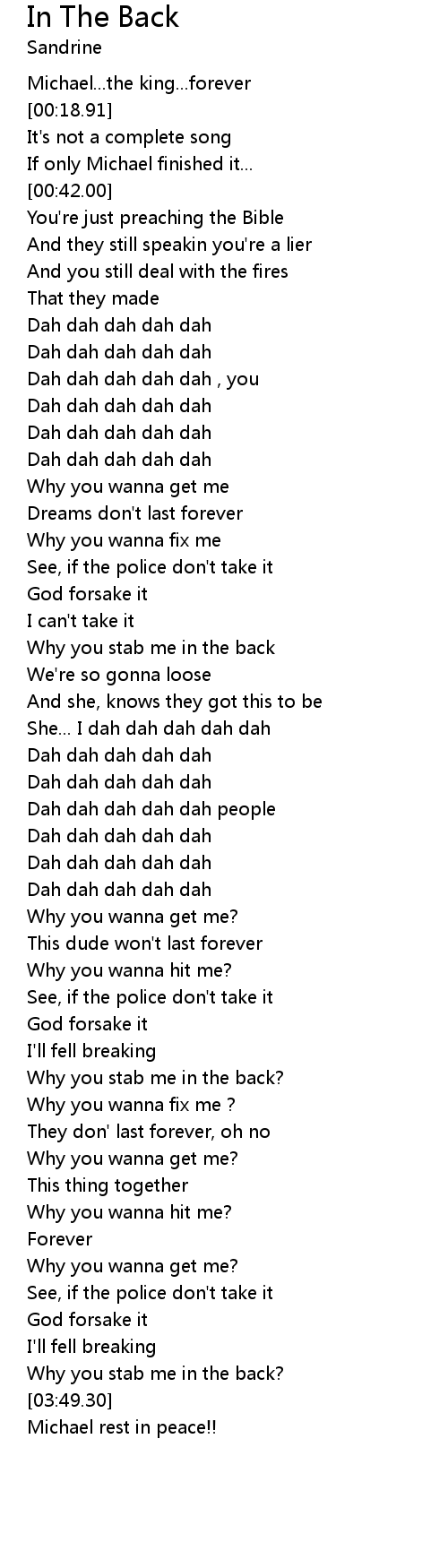 | [03:44.93] | Why you stab me in the back? |