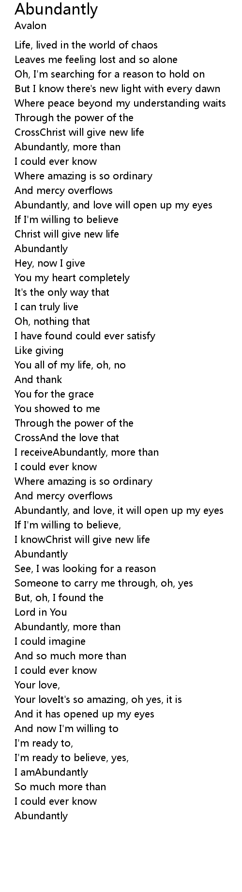 Abundantly, and love, it will open up my eyes |
