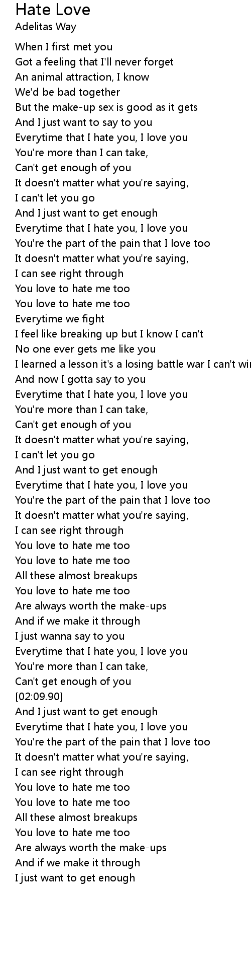 Everytime that I hate you, I love you |