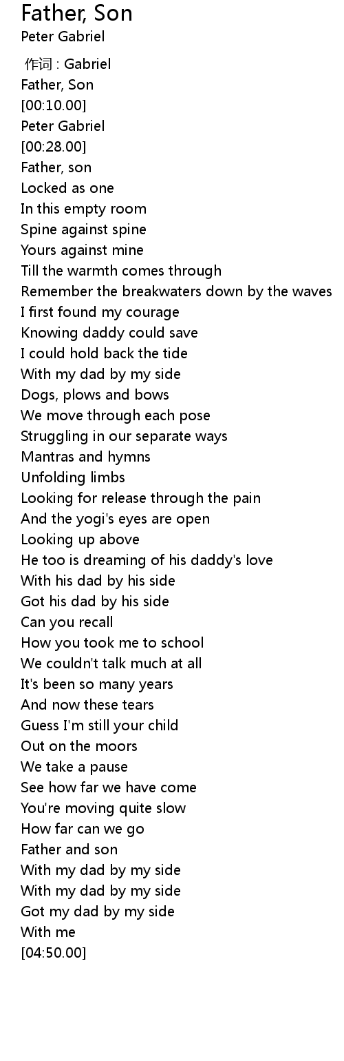 | [02:22.53] | He too is dreaming of his daddy's love |