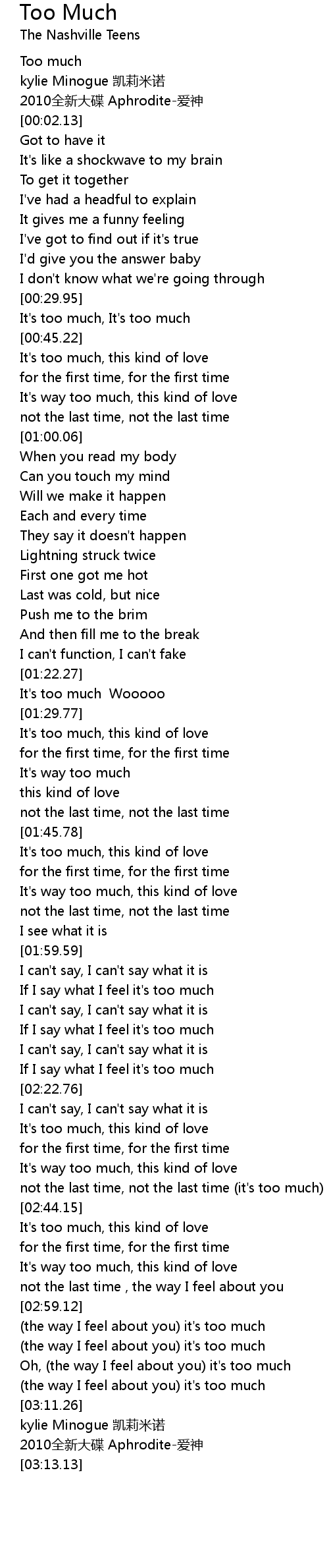 | [03:06.36] | Oh, (the way I feel about you) it's too much |