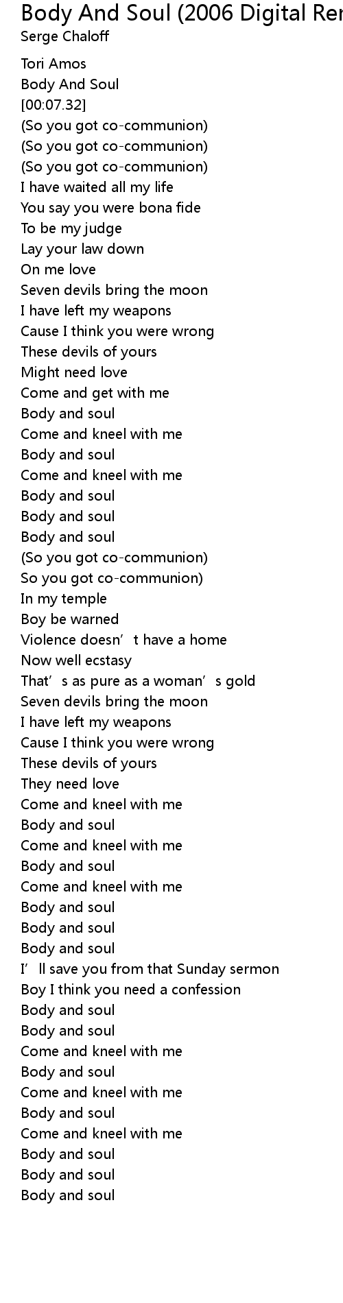 | [03:20.00] | Body and soul |