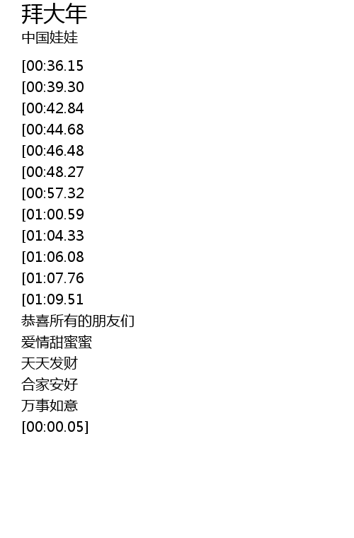 | [02:06.36][01:06.08] | 磕头作揖拜大年 |
