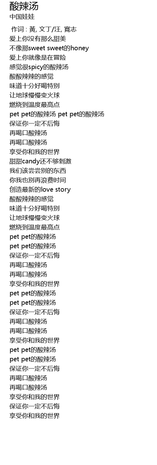 | [00:43.459] | 感觉很spicy的酸辣汤 |