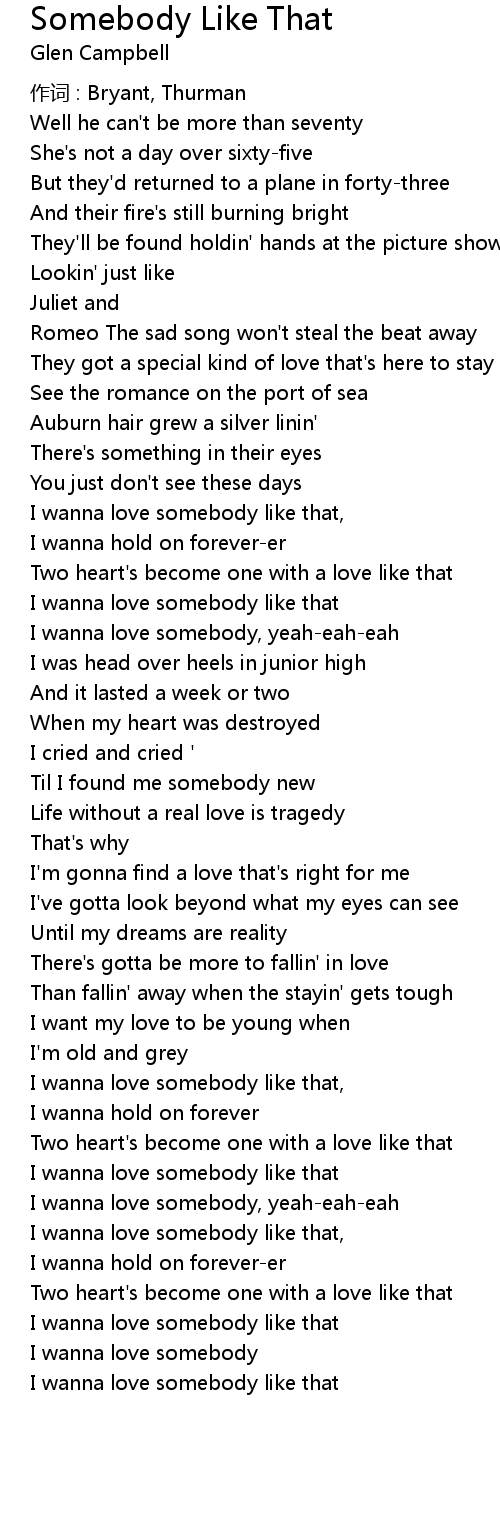 | I wanna love somebody like that |