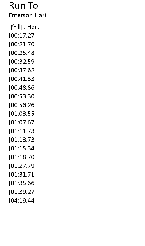 | [04:33.50][04:19.44][03:52.91][03:46.38][01:55.35][01:50.91][01:42.77] | Run to me |
