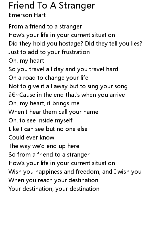 | So from a friend to a stranger | |