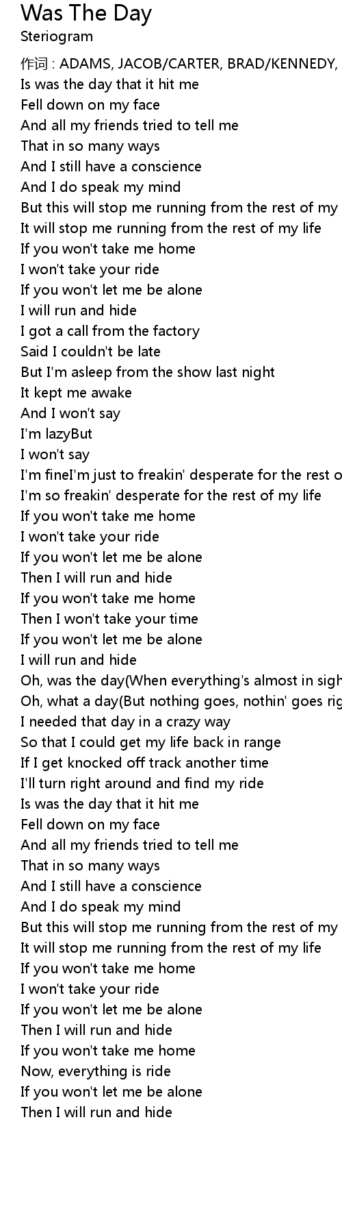 | Oh, what a day But nothing goes, nothin' goes right | |