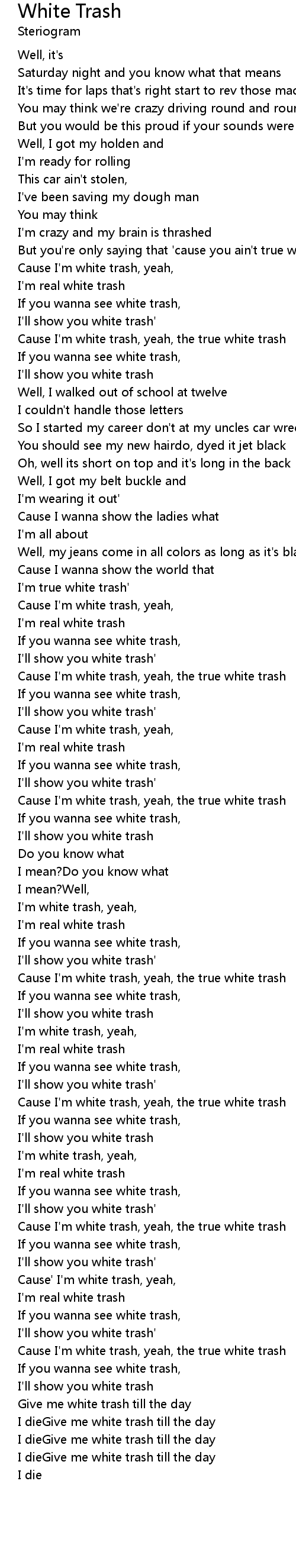 I dieGive me white trash till the day |