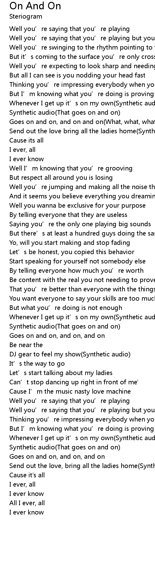 | Goes on and on, and on and on(What, what, what, what) | |