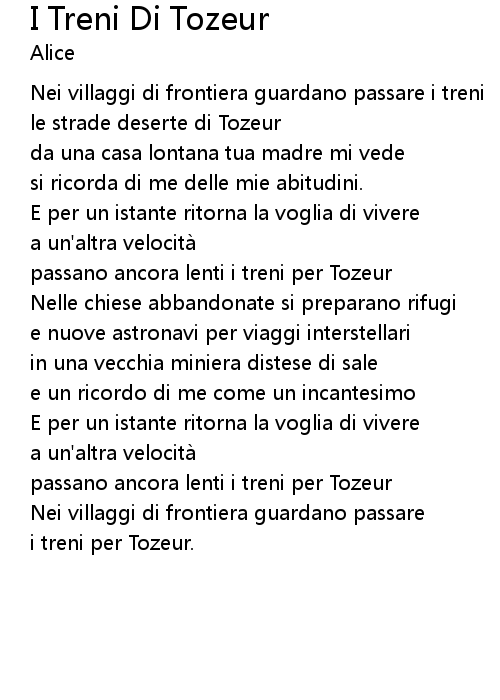 | Song | I Treni Di Tozeur |