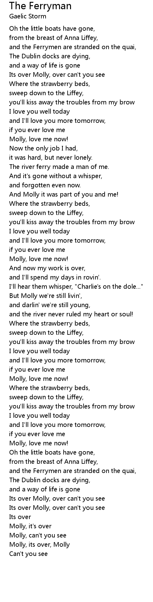 Its over Molly, over can't you see |