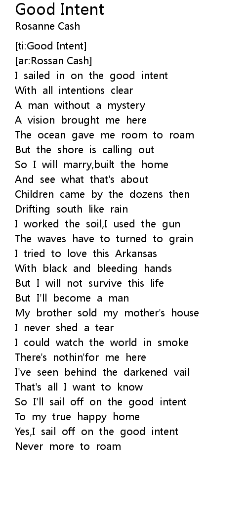 So I'll sail off on the good intent |