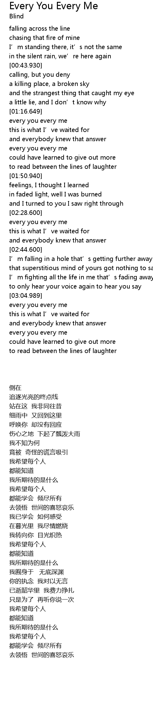 | [01:36.200] | every you every me |