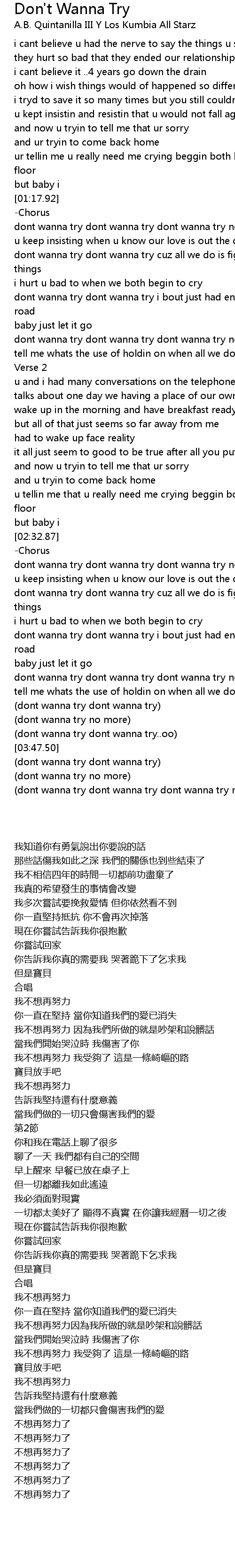 dont wanna try dont wanna try dont wanna try no more |
