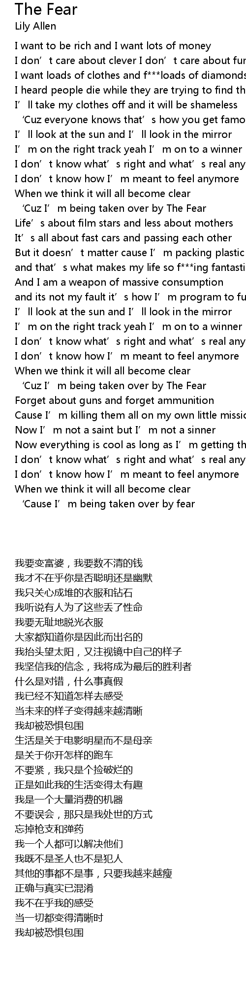| [00:58.760] | ' Cuz I' m being taken over by The Fear |
