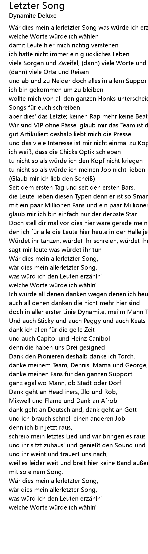 | Doch stell dir mal vor dies hier w re gerade mein allerletzter Song, | |