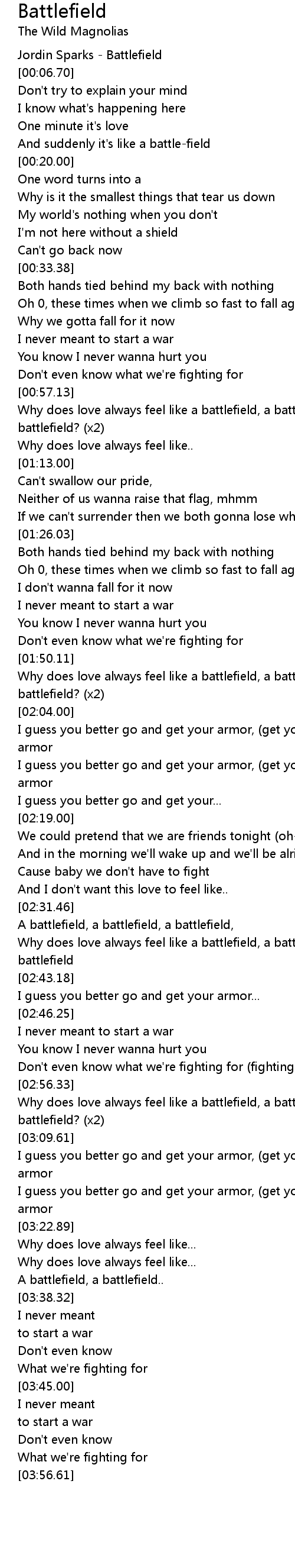 Why does love always feel like a battlefield, a battlefield, a battlefield? (x2) |