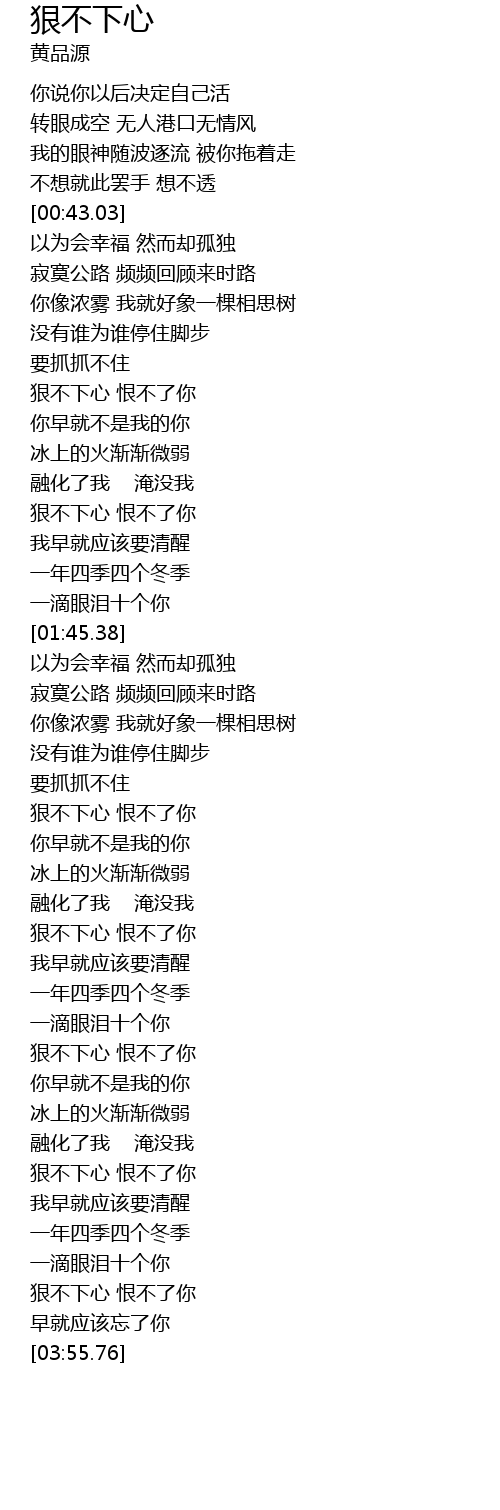 | [03:48.61] | hěn bù xià xīn hèn bù liǎo nǐ |