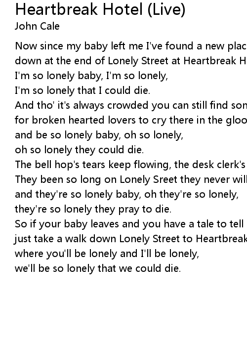 just take a walk down Lonely Street to Heartbreak Hotel |