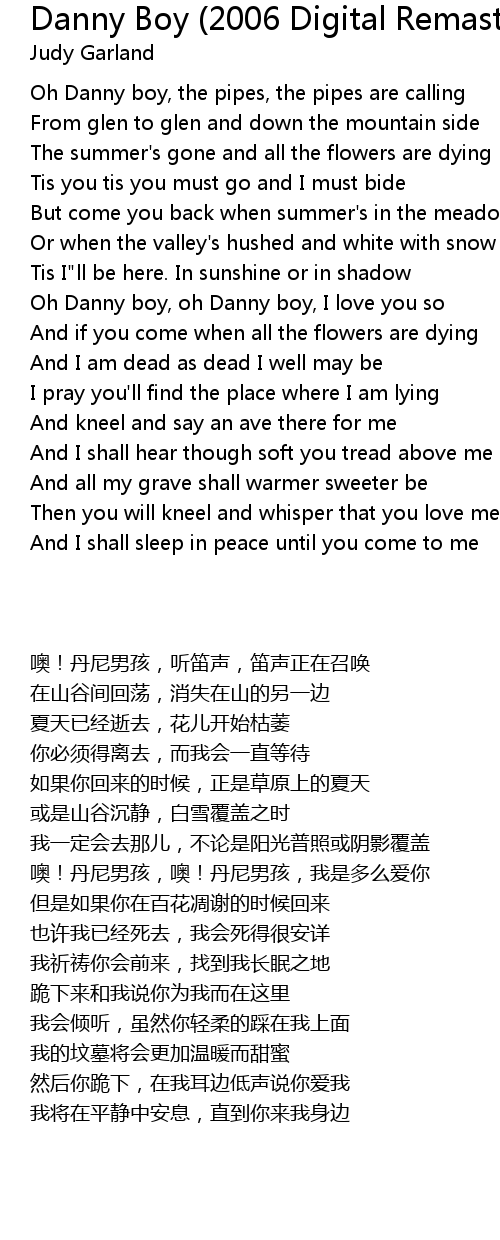 Oh Danny boy, oh Danny boy, I love you so |