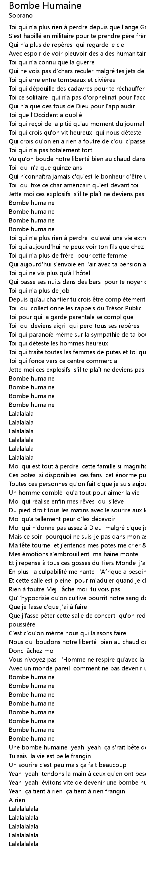 | [04:57.09] | Une bombe humaine yeah yeah ça s'rait bête de tout faire péter |