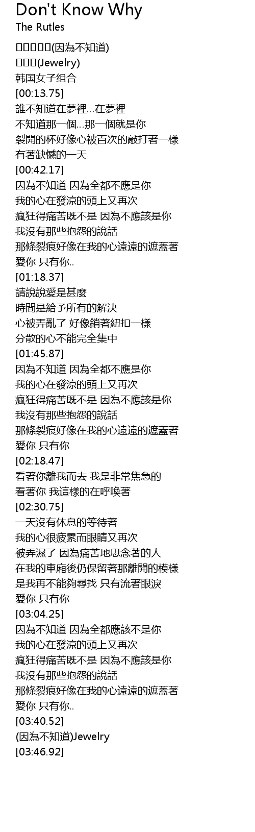 | [03:44.67] | (因為不知道)Jewelry |