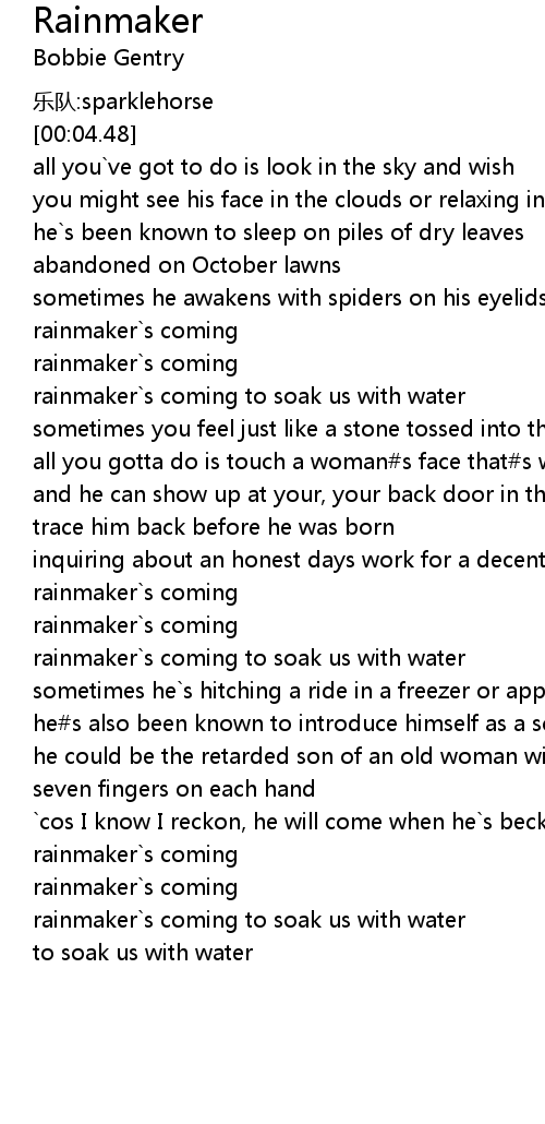 | [00:56.59] | rainmaker`s coming |