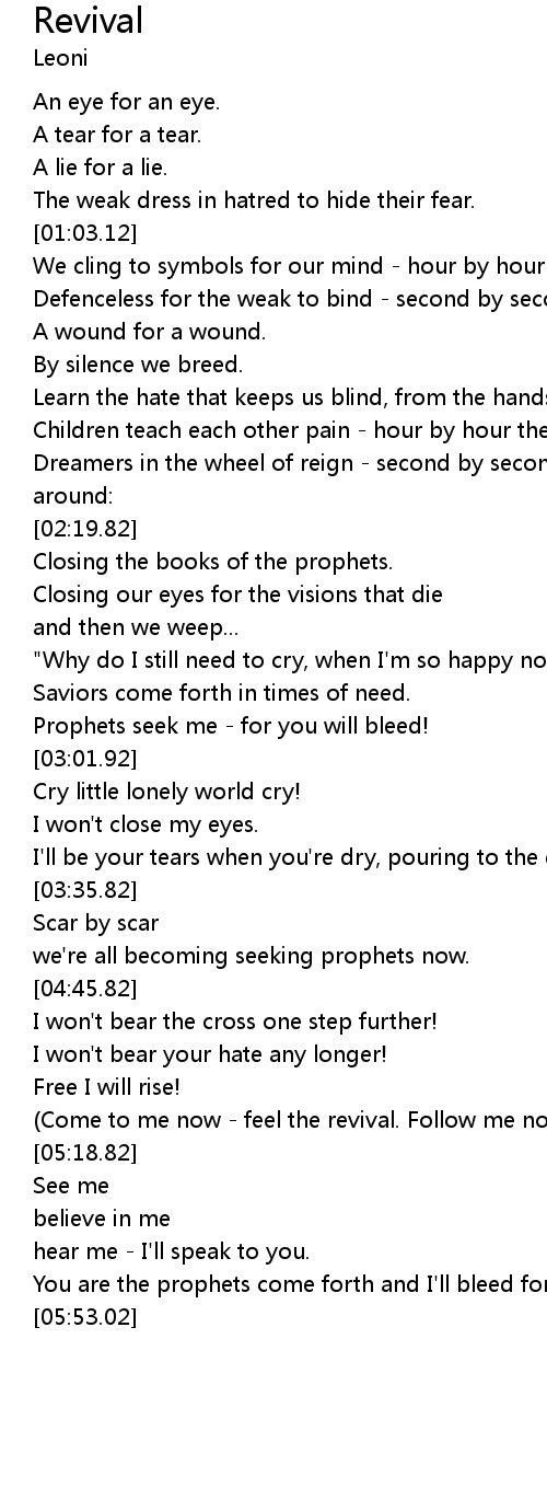 | [05:11.62] | (Come to me now - feel the revival. Follow me now - join the revival) |