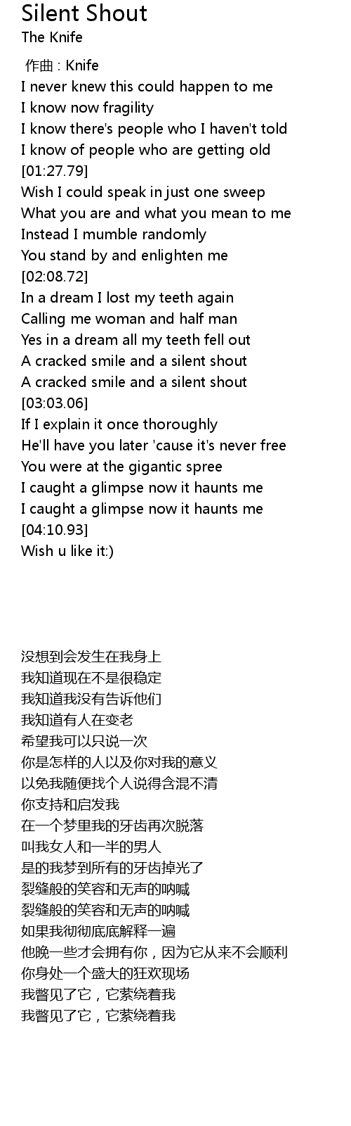 | [02:44.75] | Yes in a dream all my teeth fell out |