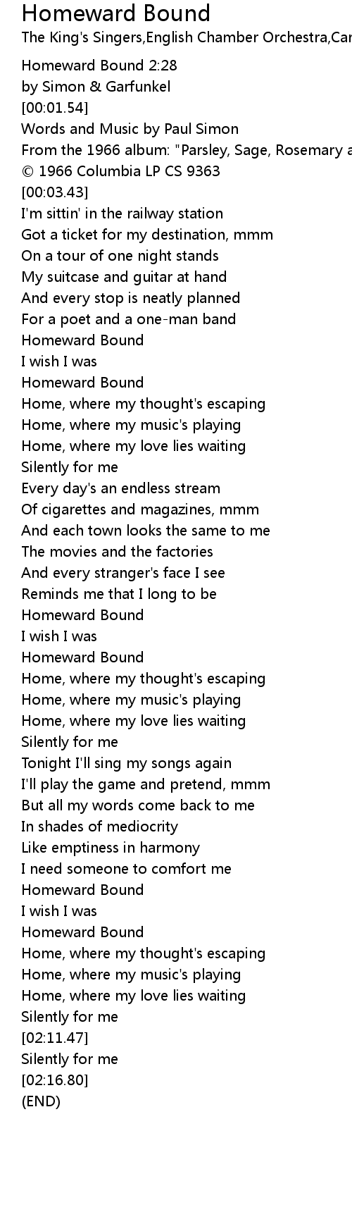 | [00:02.67] | From the 1966 album: "Parsley, Sage, Rosemary and Thyme" |