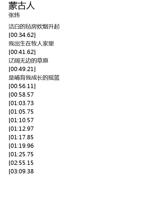 | [03:24.12][02:55.15][01:27.74] | zhè jiù shì měng gǔ rén |