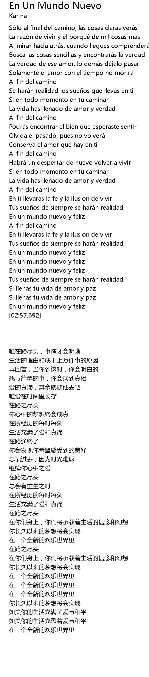 | [00:10.202] | So lo al final del camino, las cosas claras vera s |
