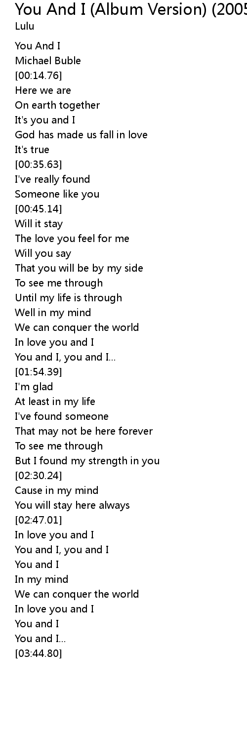 You And I (Album Version) (2005 Digital Remaster) Lyrics